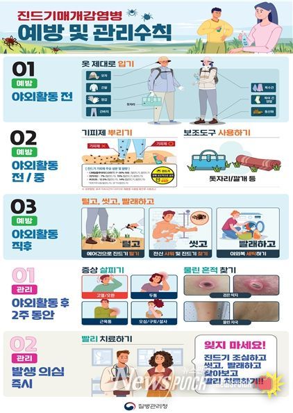 뉴스펀치 최영남 기자 | 전북특별자치도가 봄철 야외활동 증가에 따라 진드기 매개 감염병 예방에 각별한 주의를 당부했다.