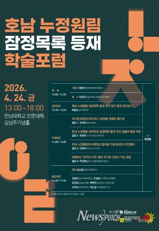 17일 전남대학교에 따르면, ‘호남 누정원림 잠정목록 등재 학술포럼’이 오는 4월 24일 오후 1시부터 6시까지 전남대학교 인문대학 김남주기념홀에서 개최된다.