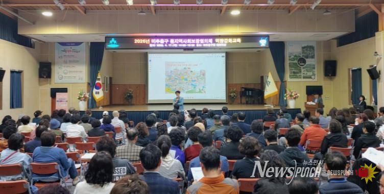 뉴스펀치 정홍균 기자 | 인천 미추홀구 지역사회보장협의체는 17일 구청 대회의실에서 협의체 위원과 담당 공무원 200여 명을 대상으로 ‘2026년 동지역사회보장협의체 역량 강화교육’을 개최했다.