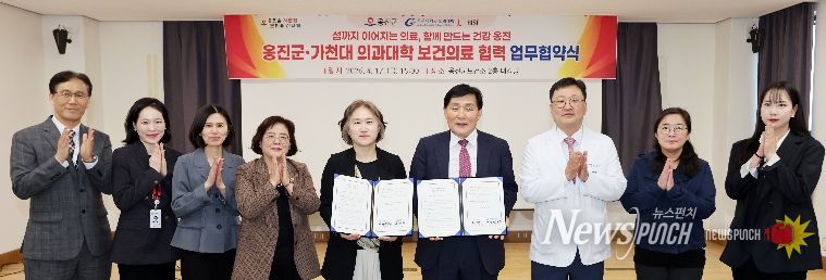 뉴스펀치 정홍균 기자 | 옹진군은 지난 17일 보건소 대강당에서 가천대학교 의과대학과‘도서지역 보건의료 향상 및 지역의사 양성을 위한 업무협약(MOU)을 체결했다고 밝혔다.