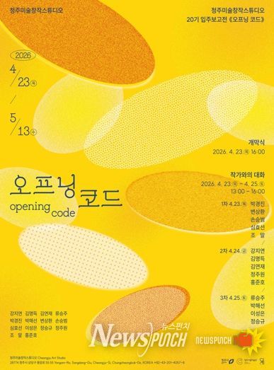 뉴스펀치 이현승 기자 | 청주미술창작스튜디오는 20기 입주예술가의 입주보고전 ‘오프닝 코드’를 오는 4월 23일부터 5월 13일까지 개최한다고 밝혔다.