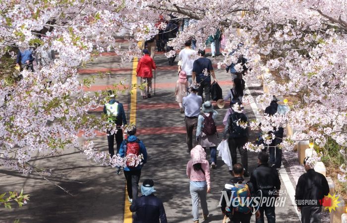 축제는 오전 9시 30분 장봉풍물패와 바다소리 앙상블·중창단의 식전공연으로 시작되어 축제 분위기를 한층 고조시켰으며, 이후 메인 프로그램인 ‘벚꽃길 걷기’가 진행됐다. 참가자들은 옹암해수욕장을 출발해 말문고개를 거쳐 돌아오는 약 4.0km 코스를 따라 벚꽃길을 걸으며 사진 촬영과 함께 봄 풍경을 즐기는 등 높은 만족도를 보였다.