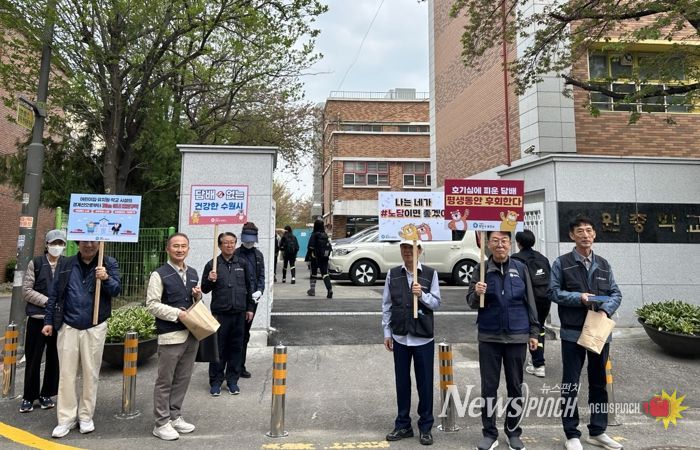 뉴스펀치 박상훈 기자 | 수원시 장안구보건소가 17일 근로복지공단수원어린이집, 송정초등·중학교, 송죽초등학교 등 통학로 일대에서 금연 캠페인을 펼쳤다.