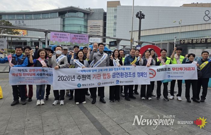 뉴스펀치 박상훈 기자 | 수원시 팔달구보건소는 17일 수원역 일원에서 ‘금연환경조성 합동 캠페인’을 펼쳤다.