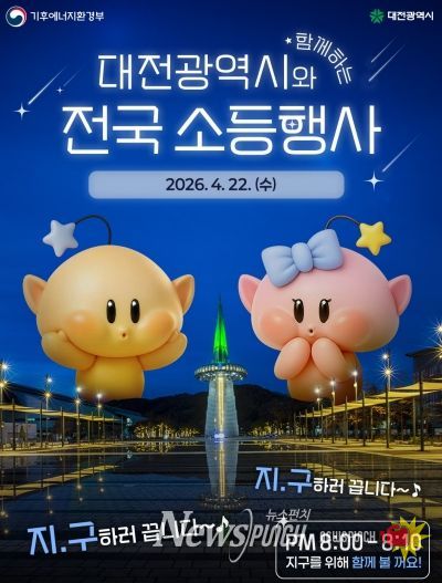 뉴스펀치 이현승 기자 | 대전시는 제56주년 지구의 날을 맞아 20일부터 25일까지 ‘탄소중립 실천으로 세상을 잇다, 지구는 녹색대전환 중’을 슬로건으로 기후변화주간을 운영하고, 22일 저녁에는 소등행사를 실시한다.