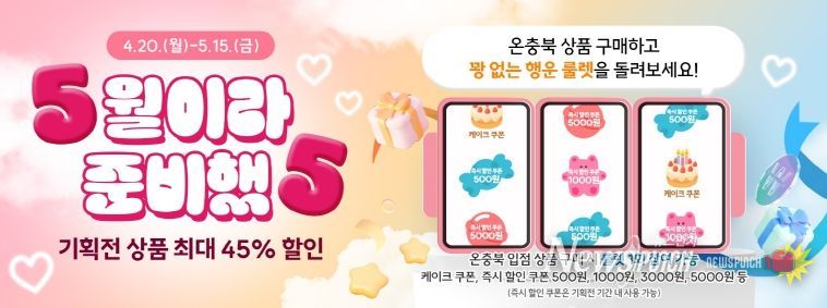 또한, 구매 고객을 대상으로 ‘행운 룰렛 이벤트‘를 진행하여 케이크 쿠폰과 500원부터 5,000원까지의 즉시 할인쿠폰도 제공하여 소비자의 참여를 유도하고 쇼핑 만족도를 높일 계획이다.