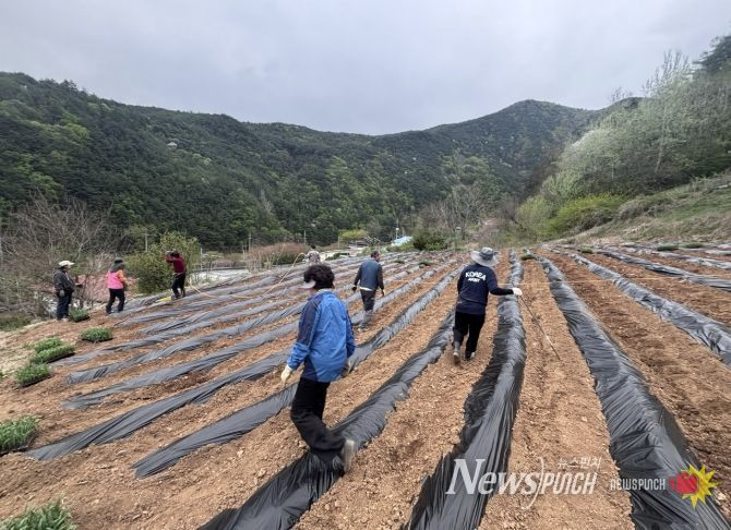 뉴스펀치 이현승 기자 | 단양군 단성면 주민자치위원회는 주민자치위원 16명이 참여한 가운데 ‘사랑의 나눔 농장가꾸기 사업’을 추진했다고 18일 밝혔다.