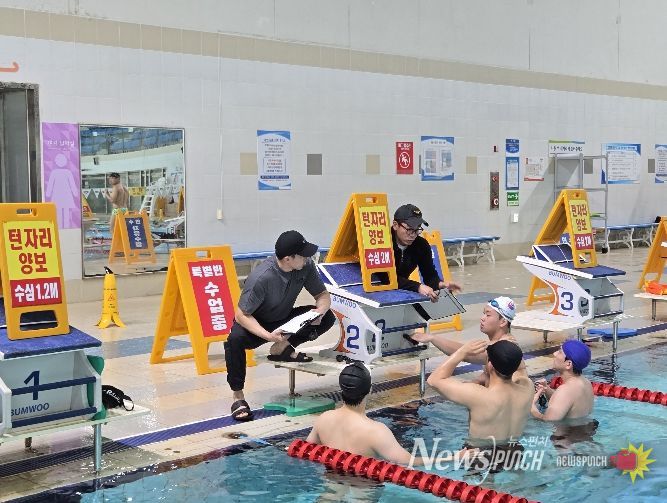 이날 훈련에는 천안서북소방서 구조대원 10여 명이 참석해 수영장 내 수심 2m 구간을 활용해 기초 수영 및 입영, 수중 인명 구조 등 실전 중심의 훈련을 진행했다.