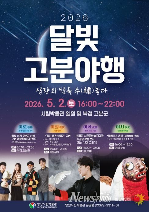 뉴스펀치 박세훈 기자 | 양산시립박물관(관장 신용철)은 5월 2일 박물관과 북정 고분군(사적 제93호) 일대에서 ‘2026 달빛 고분 야행(夜行)’을 개최한다고 밝혔다.