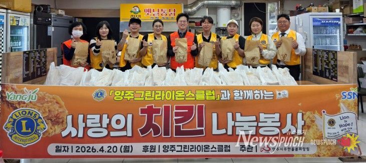 양주시무한돌봄희망팀 나규필 팀장은 취약계층일수록 일상생활유지의 어려움이 크기 때문에 치킨이나 외식 음식을 접하기 어려운 현실인데 소외계층을 위해 따뜻한 나눔을 실천해 주신 양주그린라이온스 클럽에 감사드리며 후원받은 치킨은 어린이 가구 등 지원이 필요한 취약계층과 위기가구에 전달하겠다고 말했다.