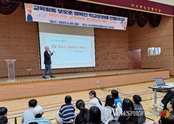 뉴스펀치 박상훈 기자 | 미사중앙초등학교는 4월 20일 5학년 전교생을 대상으로 ‘찾아가는 교육활동 침해행위 예방교육’을 운영했다고 밝혔다.