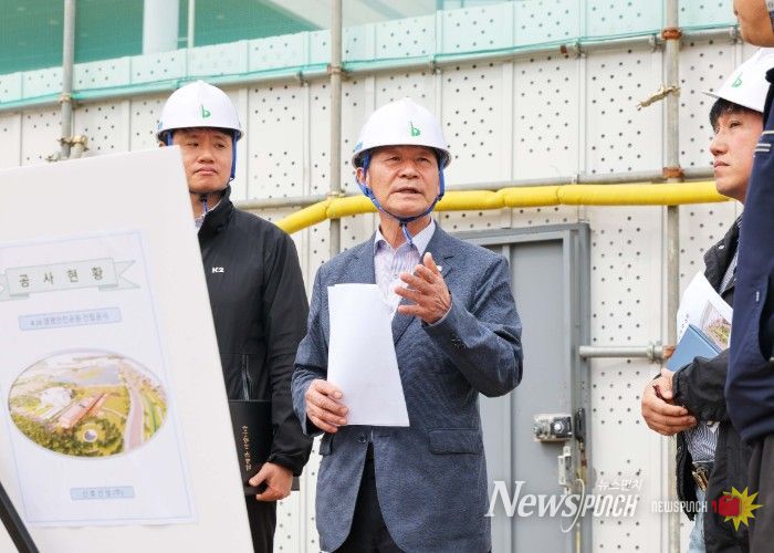 뉴스펀치 박상훈 기자 | 안산시의회 박태순 의장이 20일 단원구 초지동 4·16생명안전공원 건립공사 현장을 방문해 공사 진행 상황을 점검하고 안전 시공과 원활한 자재 수급을 당부했다.