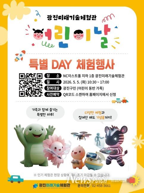 뉴스펀치 박상훈 기자 | 광진미래기술체험관은 오는 5월 5일 어린이날을 맞아 가족과 함께 즐길 수 있는 ‘광진미래기술 체험데이’를 개최한다.