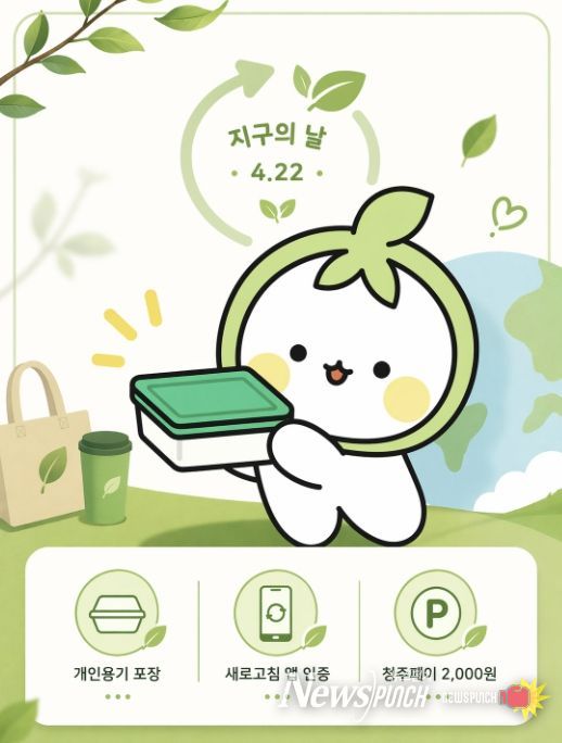 뉴스펀치 이현승 기자 | 청주시는 지구의 날(4.22.)을 기념하기 위해 ‘개인용기 포장주문 보상제’ 참여 매장을 확대하고, 시민들의 친환경 소비 실천 확산에 나선다고 21일 밝혔다.