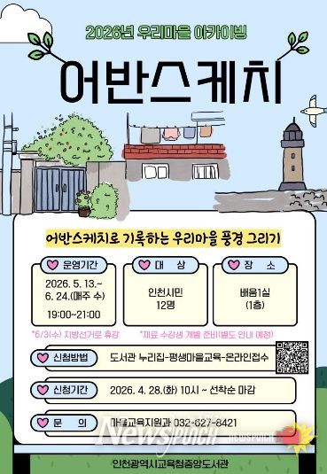 뉴스펀치 정홍균 기자 | 인천광역시교육청중앙도서관은 2026년도 마을교육 아카이빙 사업의 일환으로, 5월 13일부터 ‘우리 마을 아카이빙, 어반스케치’ 프로그램을 운영한다.