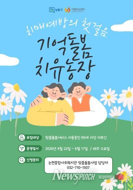 뉴스펀치 정홍균 기자 | 인천시 남동구보건소가 자연 속 농업 활동을 활용한 치매 예방 프로그램 ‘기억돌봄 치유농장’을 올해부터 정식 사업으로 확대 운영한다.