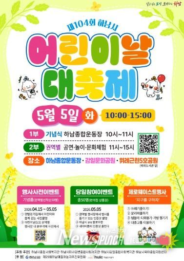 뉴스펀치 박상훈 기자 | 하남시는 2026년 제104회 어린이날을 맞아 오는 5월 5일, 어린이와 가족이 함께 즐길 수 있는 ‘제104회 하남시 어린이날 대축제’를 개최한다.