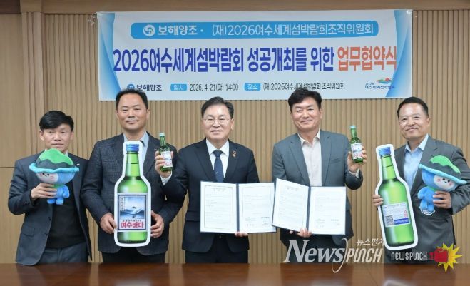 뉴스펀치 최영남 기자 | 2026여수세계섬박람회 조직위원회가 보해양조와 손잡고 ‘2026여수세계섬박람회’ 홍보에 나섰다.