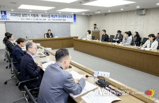 뉴스펀치 박상훈 기자 | 수원특례시는 21일 시청 상황실에서 김현수 제1부시장 주재로 상반기 징수대책보고회를 열고, 징수 부서별 징수목표액과 징수 상황을 점검했다.
