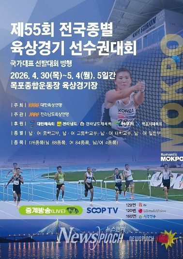 뉴스펀치 최영남 기자 | 목포시는 오는 4월 30일부터 5월 4일까지 5일간 목포종합경기장에서 ‘제55회 전국종별육상경기선수권대회’와 ‘2026 아시아투척선수권대회’를 개최한다고 밝혔다.