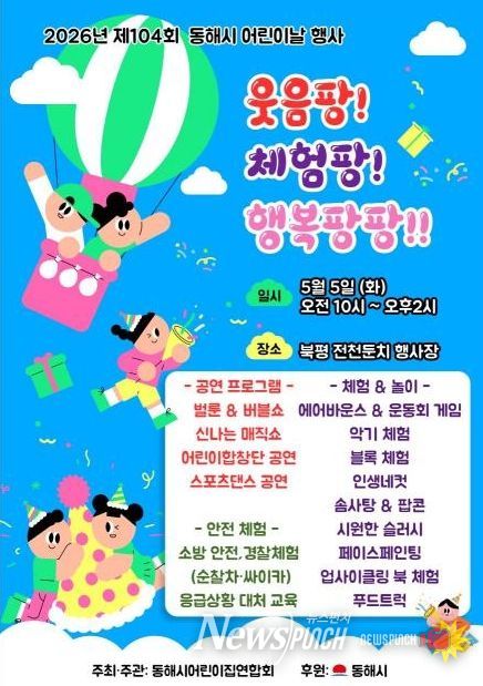 뉴스펀치 조평훈 기자 | 동해시는 어린이들이 안전하고 행복한 환경 속에서 마음껏 꿈을 키울 수 있도록 오는 5월 5일 전천 일원에서 어린이날 기념행사를 개최한다고 밝혔다.