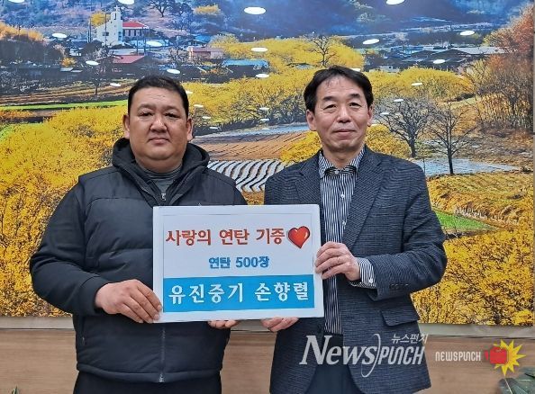 뉴스펀치 김수동 기자 | 의성군사곡면은 유진중기 손향렬 대표가 지난 5일 의성군 사곡면을 찾아 어려운 이웃을 위해 써 달라며 연탄 500장을 기탁했다고 밝혔다.