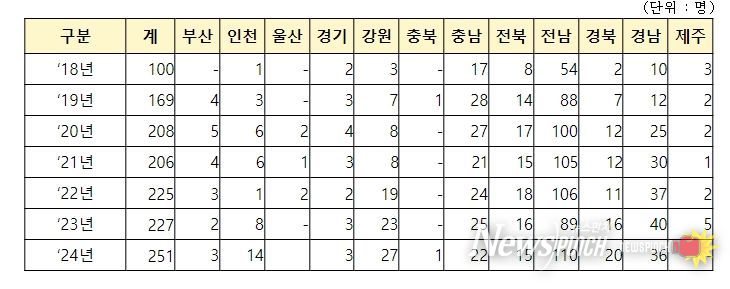뉴스펀치 장은영 기자 | 해양수산부는 2024년 청년어촌정착 지원 대상자로 전년도(227명)에 비해 약 11% 증가한 251명을 선정했다고 밝혔다.