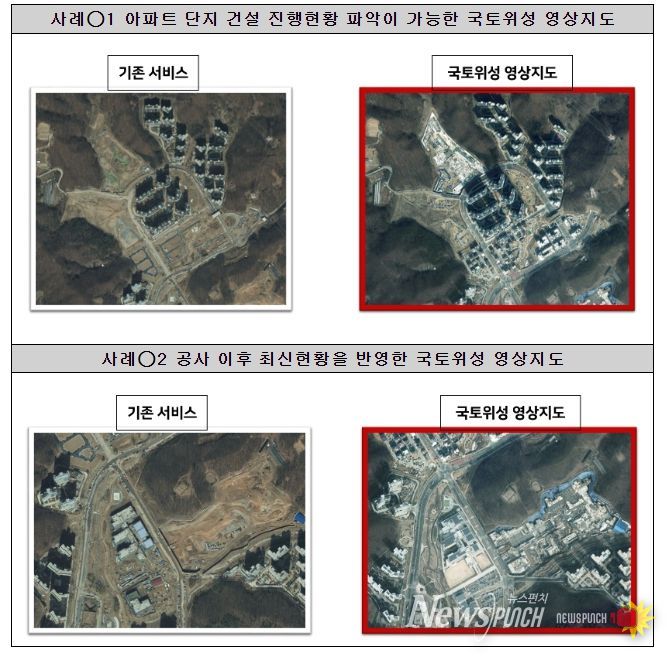 기존 1년 단위로 정밀하게 갱신되는 항공사진 기반의 국토정보플랫폼과 민간 검색포털의 영상지도 서비스와 달리, 현재 시점의 모습을 확인할 수 있게 되어 국민에게 최신정보를 제공할 수 있을 것으로 기대된다.
