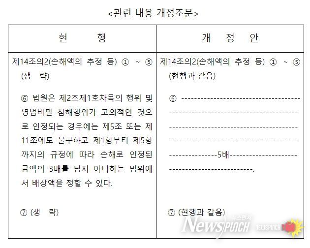 '징벌적 손해배상 한도를 3배 → 5배로 확대...국내외 비교해도 가장 높은 수준'