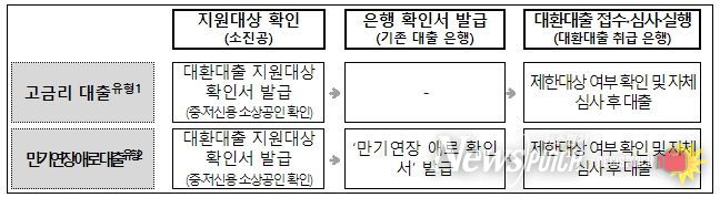 대환대출 취급은행은 대환 대상 대출이 7% 이상 금리인지, 3개월 성실상환 중인지 등 지원조건 충족 여부를 확인한 후 대환대출 지원 시 상환가능성을 심사하여 최종적으로 대출 여부를 결정한다.