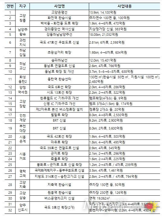 이에 대광위는 광역교통시설이 적기에 공급될 수 있도록 인허가, 갈등 조정, 재원 투자 등 사업 전반에 걸쳐 이해관계자 간 긴밀히 협력하는 체계를 만드는 한편, 추진실적을 지속적으로 점검․관리해 나갈 계획이다.