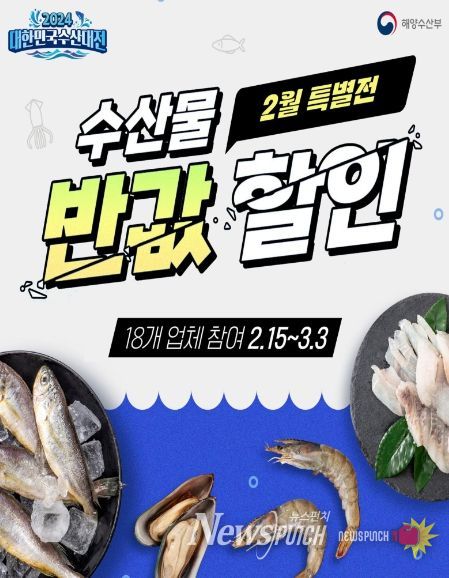 「대한민국 수산대전-2월 특별전」은 2월 15일부터 3월 3일까지 소비자들이 마트와 온라인몰에서 국산 수산식품을 구매할 때 구매 금액의 최대 50%(정부 20%+참여 업체 20~30%)를 할인 지원하는 행사이다. 이번 행사는 명태, 참조기, 고등어, 오징어, 마른 멸치 등 물가 관리 품목과 더불어 우럭, 바다장어 등 국산 수산물을 대상으로 진행하며, 행사기간 중 필요시 정부가 유통업체와 협력하여 자체 할인율을 상향하는 등 체감물가 완화를 위해 적극적으로 대응할 계획이다.