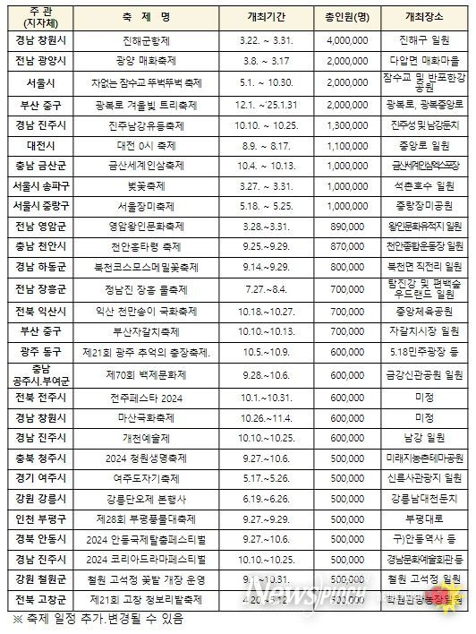 특히, 올해는 17개 시·도별로 행안부 국장급을 책임관으로 지정해, 책임 지역에서 100만명 이상 규모의 지역축제가 개최될 경우, 직접현장을 방문해 지자체 대응상황을 점검하도록 했다.