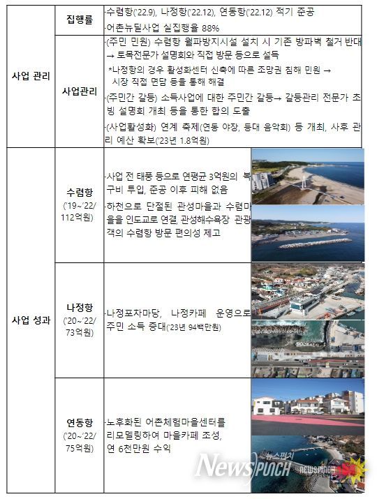 뉴스펀치 장은영 기자 | 해양수산부는 ‘어촌·어항재생사업 관리 우수지자체’ 평가 결과, 대상에 경북 경주시, 최우수상에 강원 속초시와 전남 고흥군, 우수상에 울산 동구‧강원특별자치도‧전남 무안군을 각각 선정했다고 밝혔다.