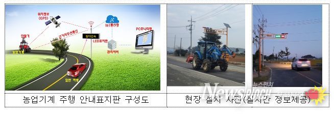 주행 안내표지판에 농업기계 접근이 감지되면 어떤 농업기계인지, 접근 거리와 속도는 얼마나 되는지 등 정보가 문자와 이미지로 표시된다. 이를 본 일반차량 운전자는 감속하거나 주의해 운전할 수 있도록 도와준다.