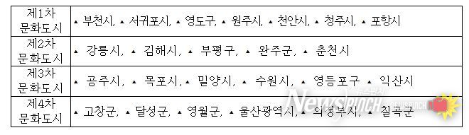 문체부는 2019년부터 2022년까지 제1차 문화도시 7곳, 제2차 문화도시 5곳, 제3차 문화도시 6곳, 제4차 문화도시 6곳 등 총 24곳*의 문화도시를 지정했고, ’23년 12월에는 ‘대한민국 문화도시’ 13곳의 조성계획을 승인했다. ‘대한민국 문화도시’는 1년간의 상담과 예비사업을 거쳐 최종 지정될 예정이다.