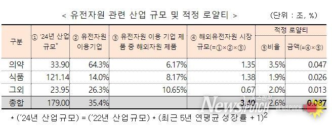 '유전자원 출처공개 시 국내 기업의 로열티 부담, 연간 약 900억 원 예상'