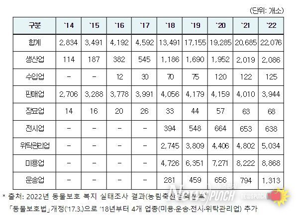 뉴스펀치 장은영 기자 | 농림축산식품부는 일부 반려동물 영업장에서 지속 발생하고 있는 불법·편법 영업, 동물학대 등 문제를 개선하기 위해 생산·판매업 등 반려동물 영업장 전반을 집중 점검·단속할 계획이라고 밝혔다.