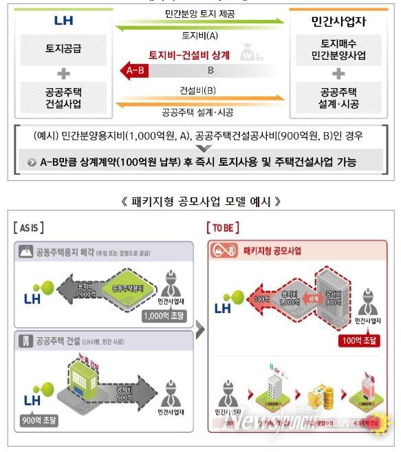 패키지형 공모사업이란 그간 별도로 추진하던 민간 분양 ‘토지공급’과 한국토지주택공사(‘LH’)의 ‘공공주택 건설사업’을 결합하여 토지비와 공공주택건설 공사비를 상계1) 처리하는 방식의 사업모델이다.