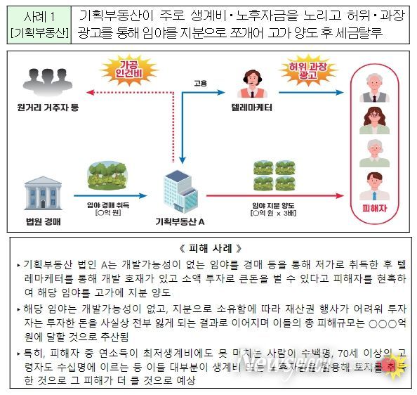 특히, 은퇴계층의 노후자금을 노리고 소액 투자를 유도하는 기획부동산 사기가 지속적으로 발생하고 있고, 주거 낙후지역 재개발을 방해하는 알박기 투기 후 관련 세금을 탈루하는 행태도 계속되고 있다.