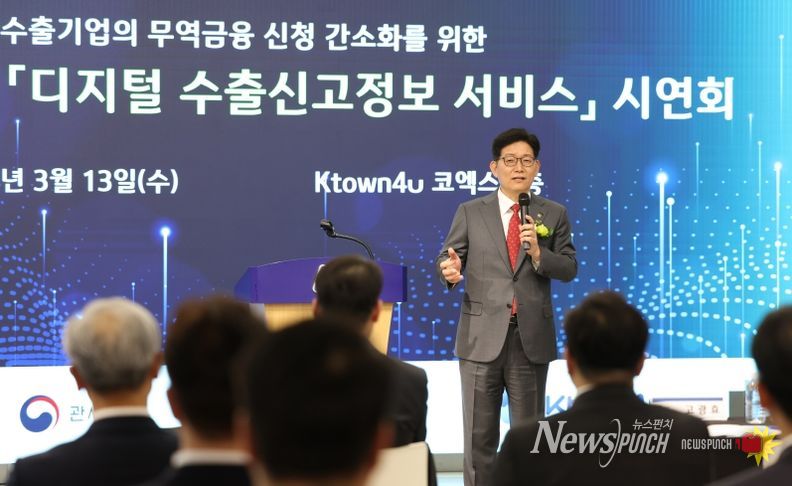 뉴스펀치 장은영 기자 | 고광효 관세청장과 디지털플랫폼정부위원회 황희 위원은 3월 13일 IBK기업은행(이하 ‘기업은행’)이 코엑스(서울시 강남구 소재)에서 개최한 「디지털 수출신고정보 서비스」 시연회에 참석했다.