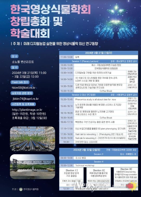 이번 학술대회는 한국영상식물학회 창립을 기념해 인공지능, 초분광, 3차원(3D) 등 최신 학술정보를 공유하고 전문인력을 양성하는 등 농업의 디지털 전환 촉진과 기술 확산을 목적으로 마련됐다.