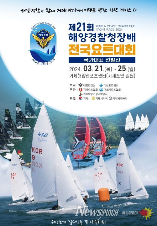 뉴스펀치 김희경 기자 | 해양경찰청은 “한려수도의 해양관광도시 거점 거제에서 제21회 해양경찰청장배 전국요트대회가 3월 21일부터 25일까지 5일간 거제시 지세포항 일원에서 개최된다”고 밝혔다.