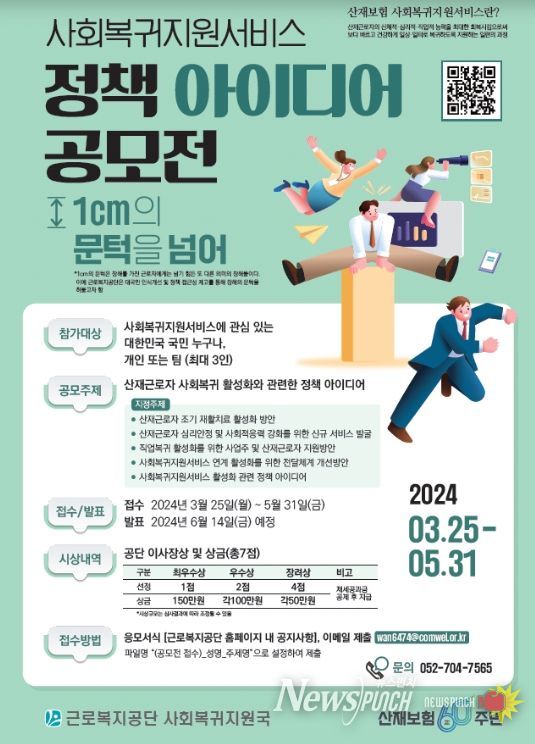 뉴스펀치 장은영 기자 | 근로복지공단은 산재보험 60주년을 맞이하여 3월25일부터 5월31일까지 대국민 공모전을 개최한다고 밝혔다.