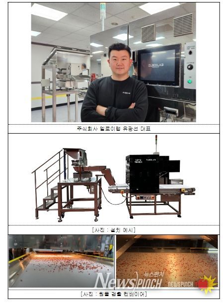 ‘엘로이랩’은 농식품 불순물 제거 장비를 개발하는 새싹기업(스타트업)으로, 인공지능(AI) 초분광 기술을 이용하여 농식품의 이물질, 변질 및 변형 등 비정형의 불순물을 검출하고 제거하는 이물검사 자동화 장비를 개발했다.