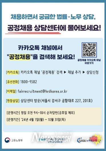 뉴스펀치 장은영 기자 | 고용노동부와 한국산업인력공단(이사장 이우영)은 기업들이 채용 과정에서 필요한 노무․법률 자문을 온라인을 중심으로 무료로 제공하는 「공정채용 상담센터」를 4월 1일 개소한다고 밝혔다.