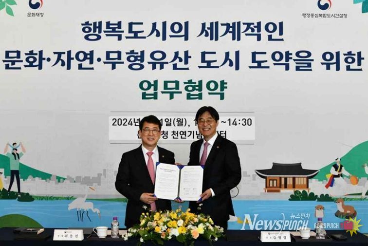 최응천 문화재청장은 “국가유산의 보존과 전승의 중요성에 깊이 공감해주신 행복청과 함께 행복도시를 중심으로 전국에 국가유산 콘텐츠의 확산을 위해 모든 역량을 다할 것”이라며 “행복도시가 세계적인 문화·자연·무형유산의 도시가 될 수 있도록 적극 협력하겠다.”라고 말했다.