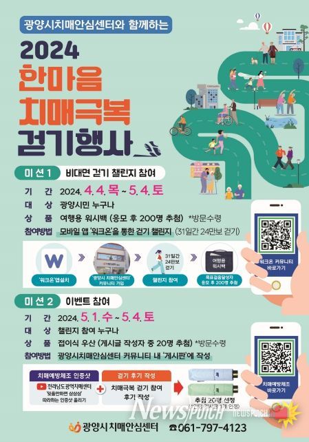 ‘온라인 한마음 치매극복 걷기행사’ 관련 내용은 광양시치매안심센터로 문의하면 된다.