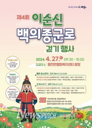 뉴스펀치 김희경 기자 | 순천시 황전면에서 이순신 장군의 발자취를 느끼고 체험할 수 있는 「제4회 이순신 백의종군로 걷기 행사」가 오는 27일 개최된다.