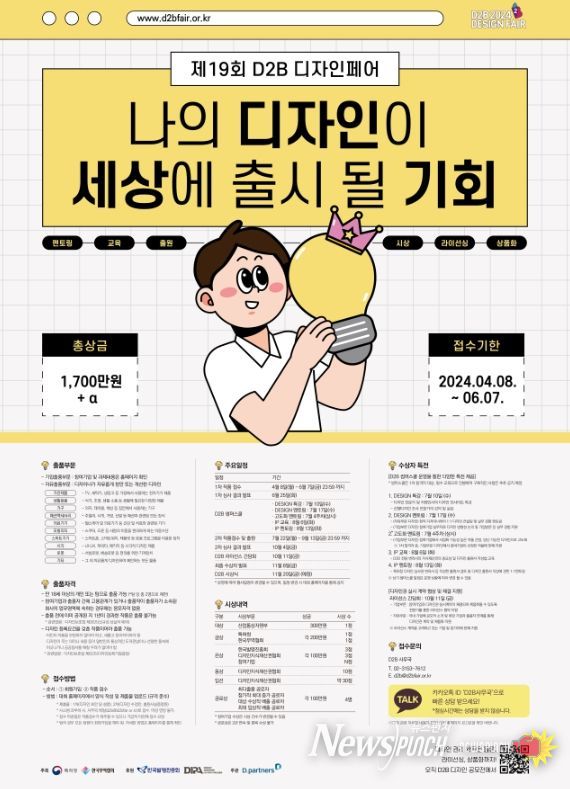 뉴스펀치 장은영 기자 | 특허청은 신제품에 대한 디자인 아이디어가 필요한 기업에 우수한 디자인 발굴과 사업화를 지원하는 ‘2024 디투비(D2B) 디자인 박람회(페어)’에 ❶참여할 기업 모집 및 ❷디자이너들의 디자인 출품작 모집에 들어간다고 밝혔다.
